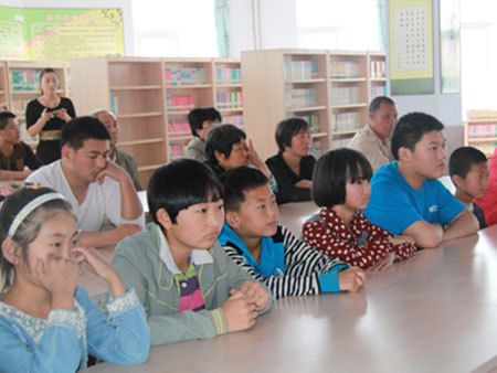 企业家为贫困生捐助仪式。出席本次捐助仪式的有丰润区工商联毛英杰女士、丰润区统战部部长郭艳军女士、丰登坞镇有关领导、唐山盛城建筑工程有限公司基金会会长张金玉先生以及我会副秘书长饶玉兵先生。